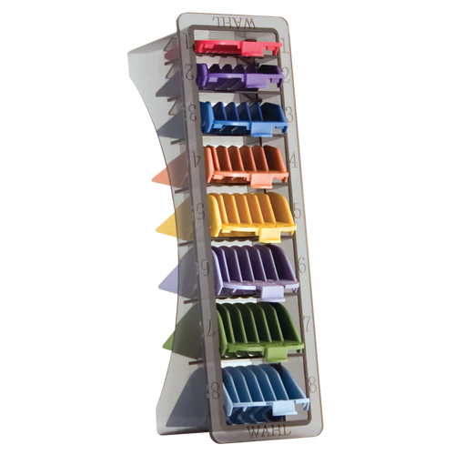 Create your desired look with ease with the Wahl Colored Cutting Guides. Each cutting guide is designed to glide through hair quickly and efficiently for a smooth, time saving finish that both you and your client will appreciate. For your convenience, these Cutting Guides are color coded for each size. You get 8 combs, each with a different color and different cutting length. The lengths range from 1/8” to 1” for a full range of options with seamless accuracy. The Color Coded Cutting Guides (#3170-400) include 8 cutting guides in different colors and size and an organizer tray to keep your station neat and transportation easy. Fits all full size series blades except for competition series and 5-in-1 Magic blades.